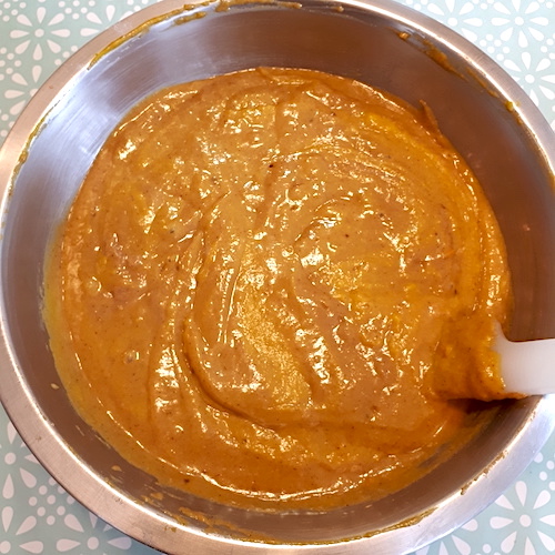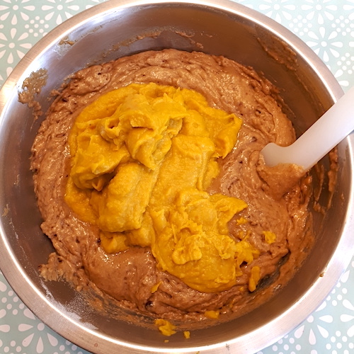 10.Incorporer la purée de potimarrron à la pâte et bien mélanger.