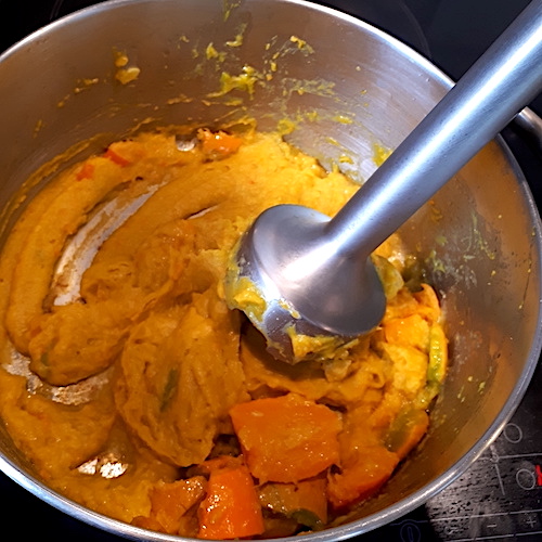 3.Égoutter puis mixer afin d’obtenir une purée.