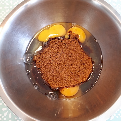5.Dans un saladier, mélanger le sucre et les œufs.