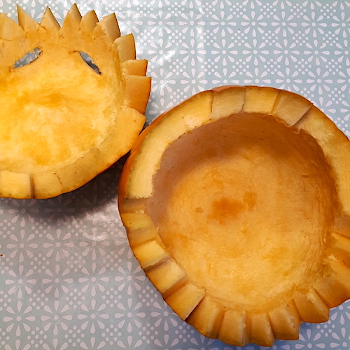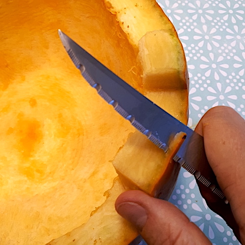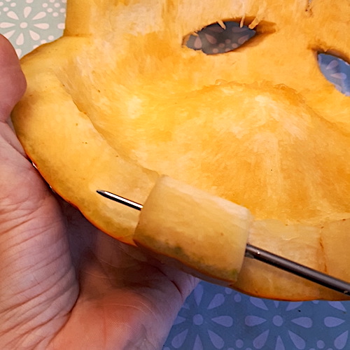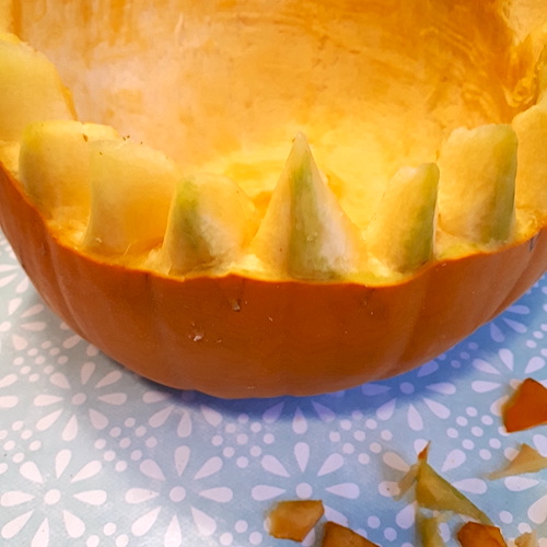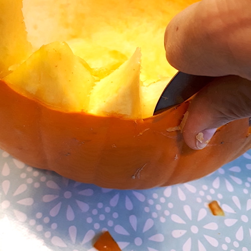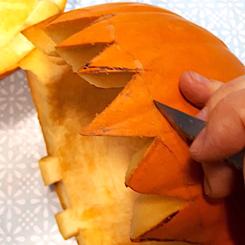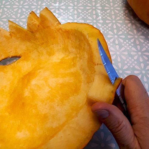 12.Enlever la peau de la citrouille uniquement sur les dents.