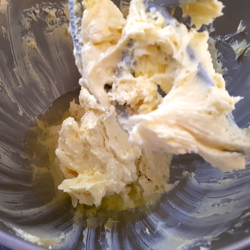 2.Battre le beurre et le sucre glace à l’aide d’un robot (ou à la main).