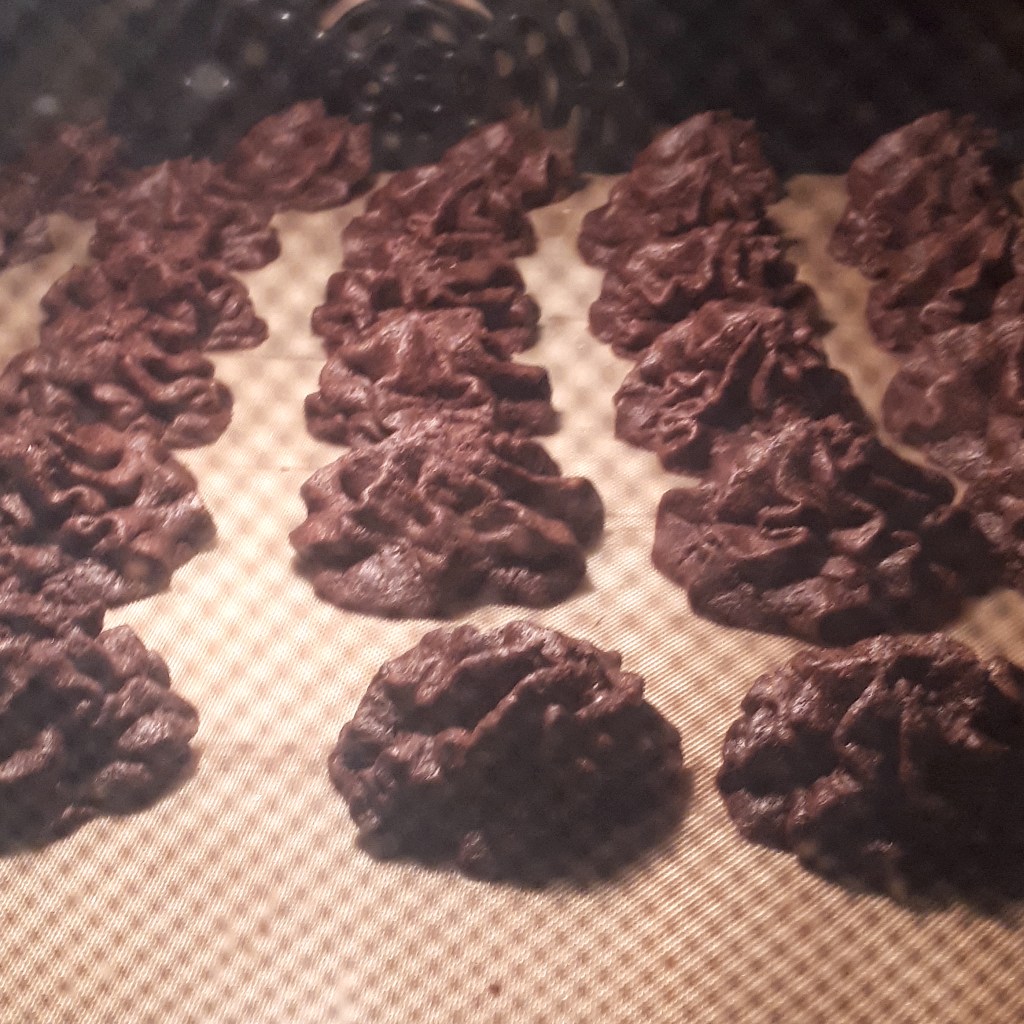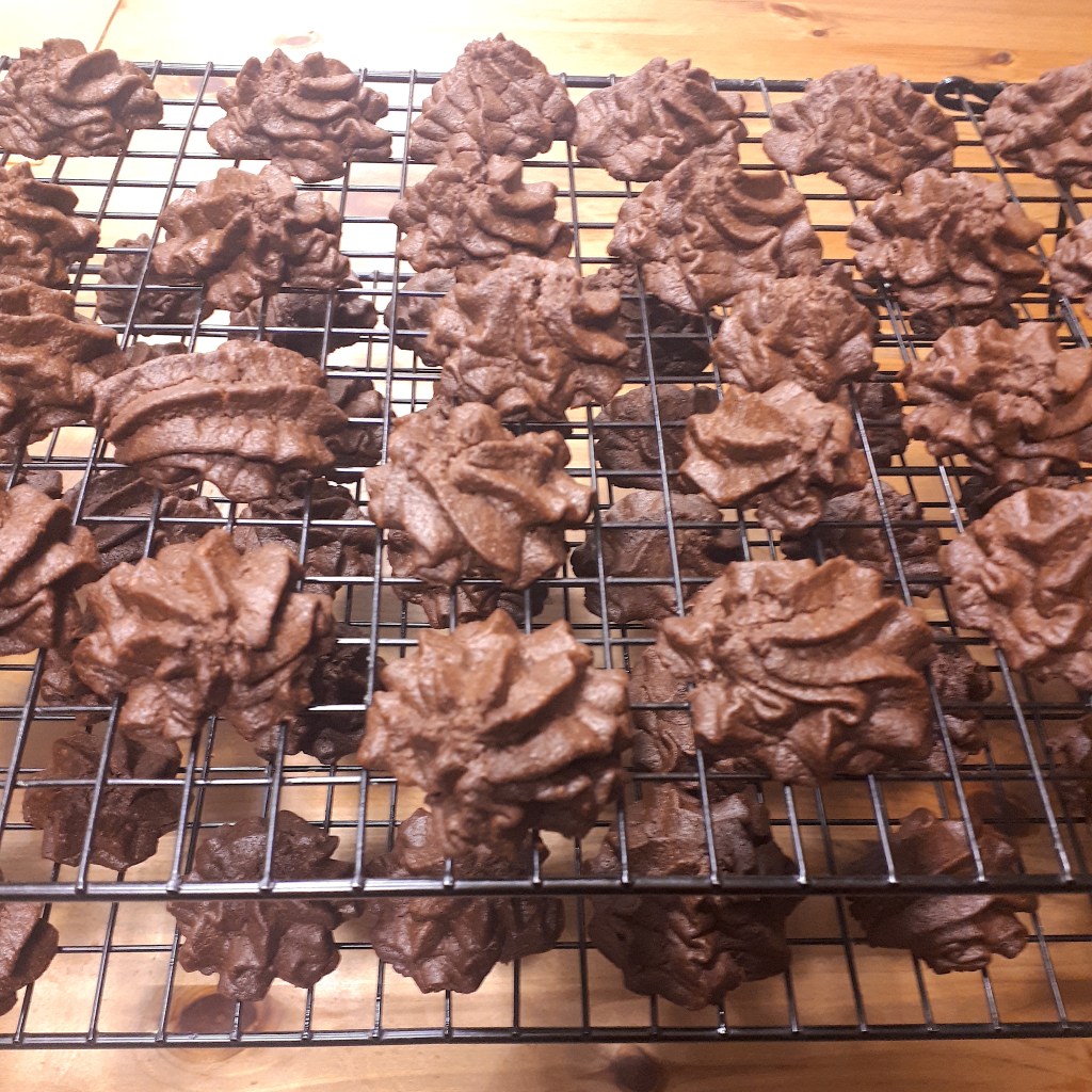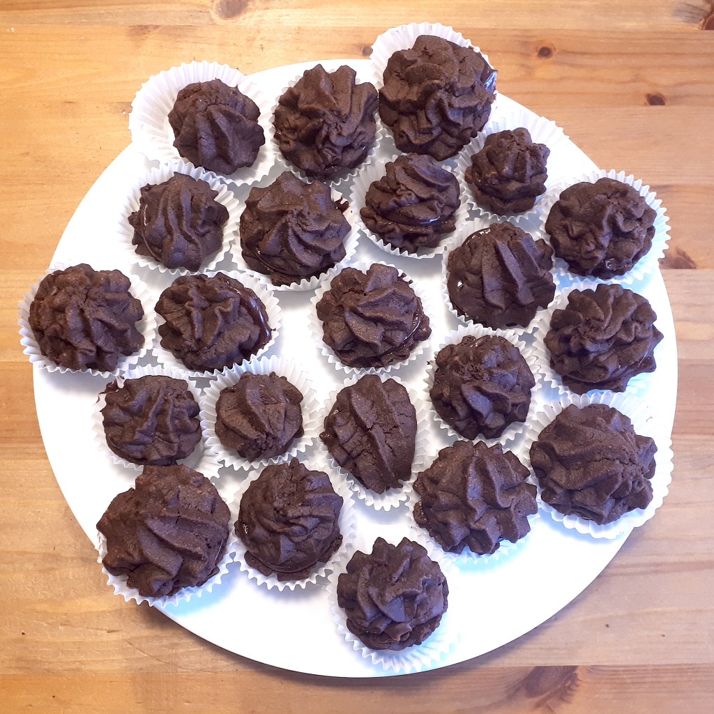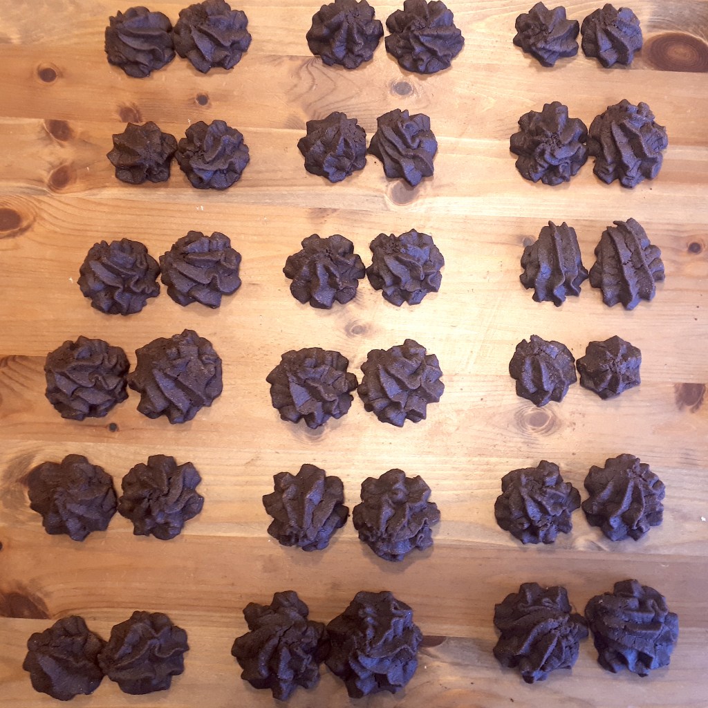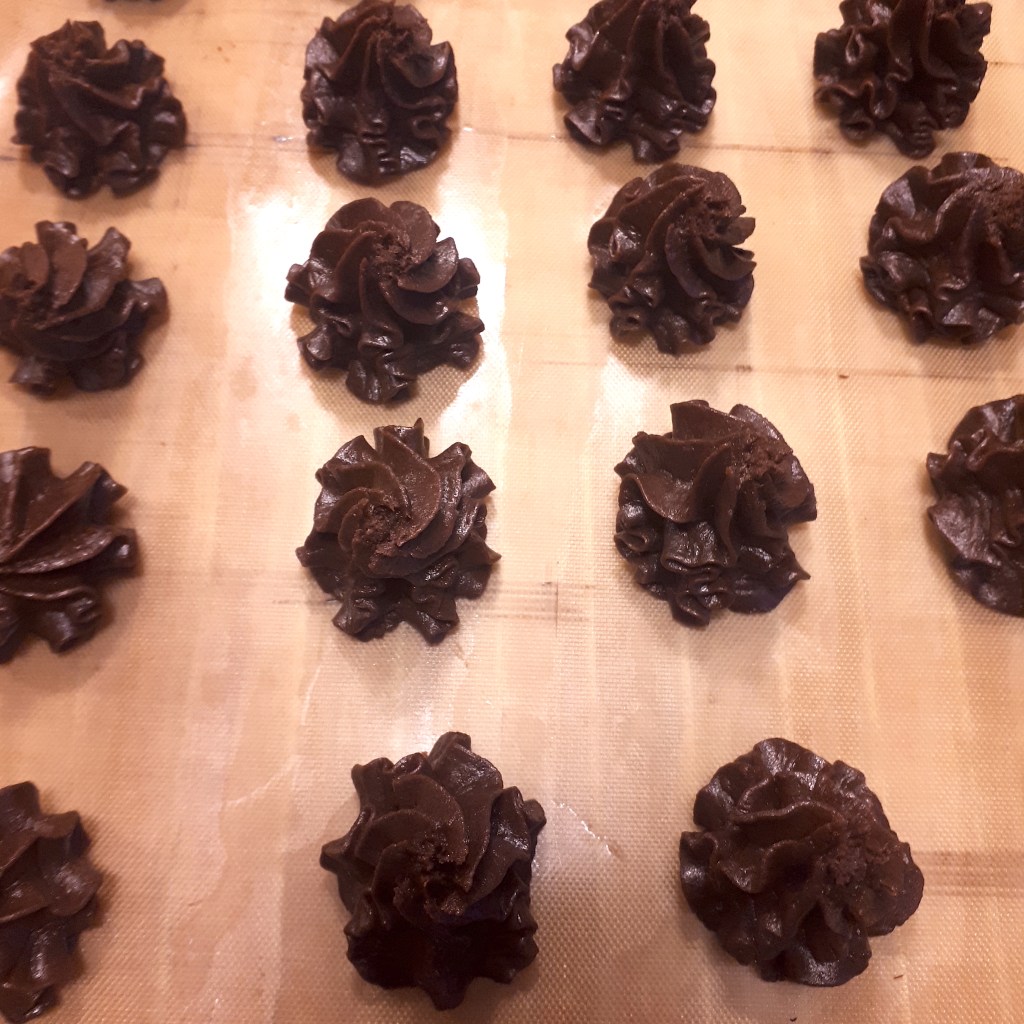 Le plus compliqué dans cette recette est de pocher les biscuits. Pour vous faciliter la tâche pensez à ne pas mettre trop de pâte dans votre poche à douille, sinon il sera très difficile d’arriver à la faire sortir.