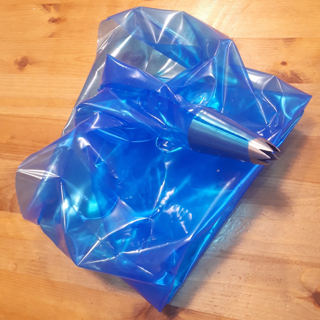 5. Lorsque la pâte est homogène, préparer une poche à douille avec une douille cannelée (pas trop petite).