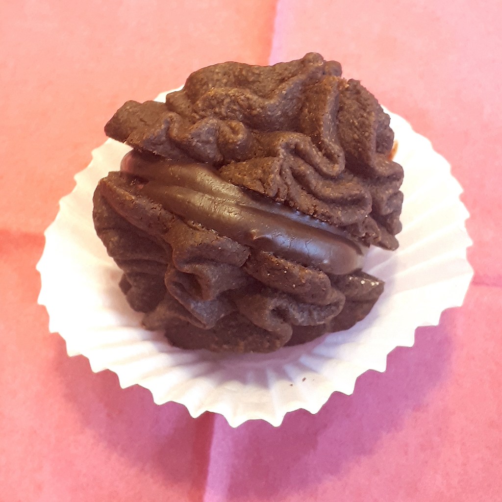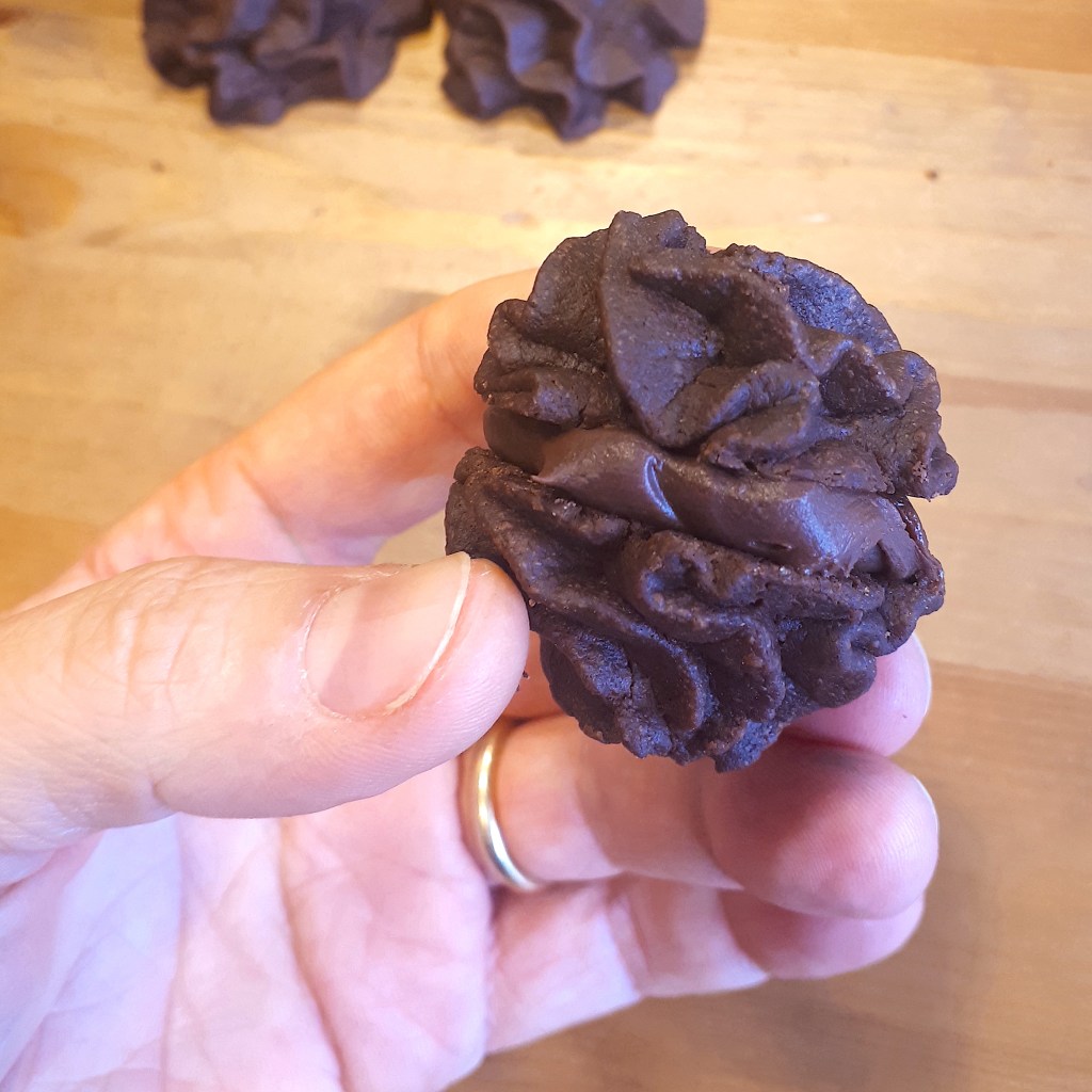 3.Prendre un sablé et garnir le côté plat avec la ganache.