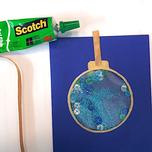 11.Dessiner un rectangle arrondi sur le haut de la boule à l’aide de votre marqueur doré ou argenté.