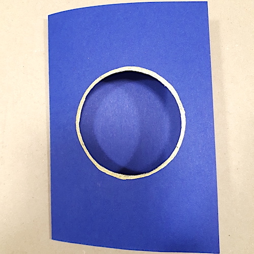 4.Placer un carton fin ou une feuille de papier brouillon à l’intérieur de votre carte avant de tracer le contour du cercle vide à l’aide de votre feutre argenté ou doré (afin d’éviter les traces de feutre à l’intérieur de votre carte).