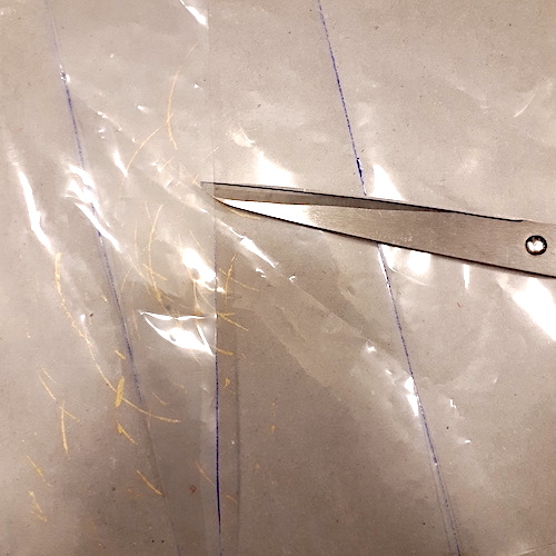 - quelques feuilles en plastique transparent souple (j’ai utilisé des feuilles de papier guitare pour la pâtisserie)
