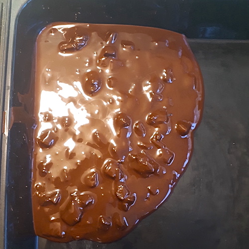 5.Lorsque le chocolat a pris, découper des morceaux (réguliers ou pas, c’est comme vous voulez!).