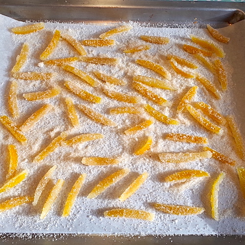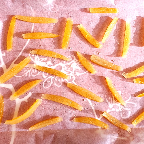 9B.Vous pouvez aussi laisser sécher les écorces sans mettre de sucre et les enrober de chocolat noir lorsqu’elles seront sèches!
