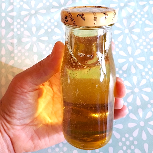 17.Verser le sirop de gingembre dans une petite bouteille en verre (ou un bocal), vous pourrez l’utiliser pour parfumer vos yaourts, ganaches au chocolat, etc.