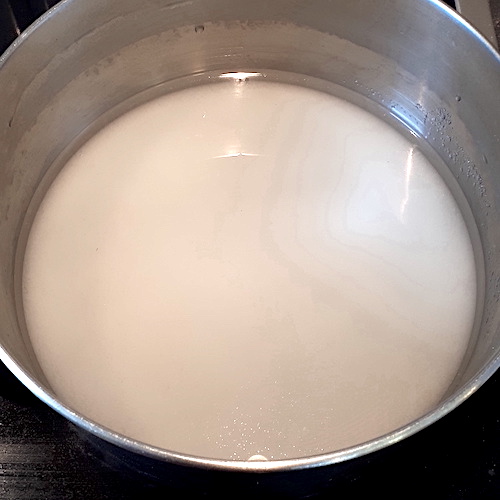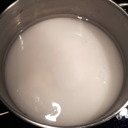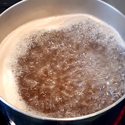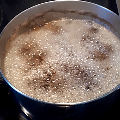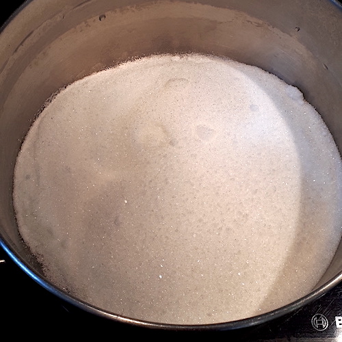 7.Dans une casserole, faire bouillir le sucre avec les 50 cl d’eau.