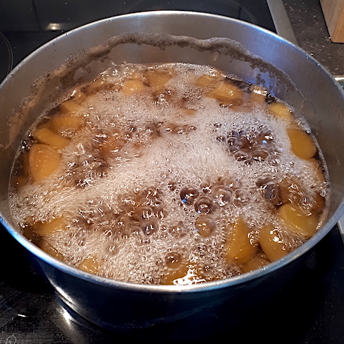 6.Ajouter les écorces d’orange ou de citron et laisser cuire environ 45 minutes.