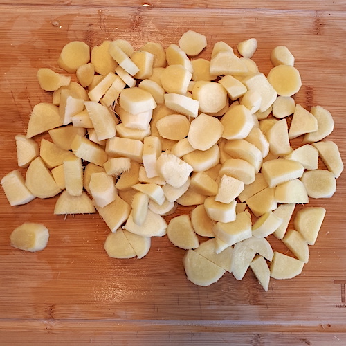 2.Tailler le gingembre en morceaux de taille moyenne.