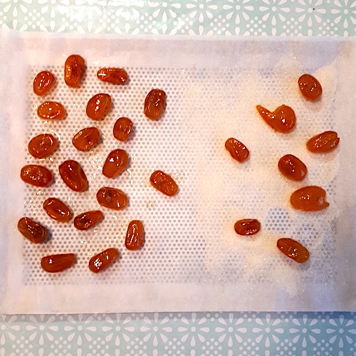 11.Laisser sécher les kumquats 12-24h. Ne pas hésiter à les retourner afin qu’ils sèchent bien de tous les côtés.