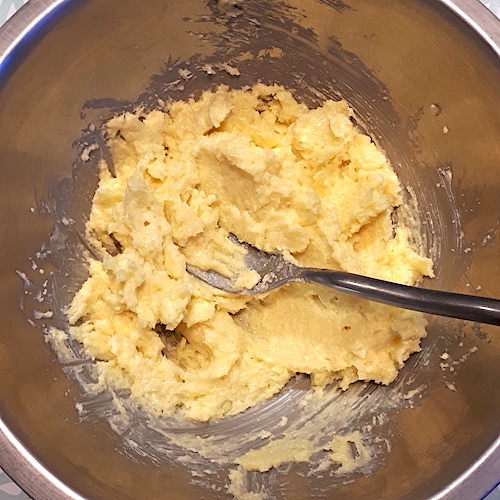 5.Dans un grand bol, battre le beurre et le sucre pour les rendre crémeux.