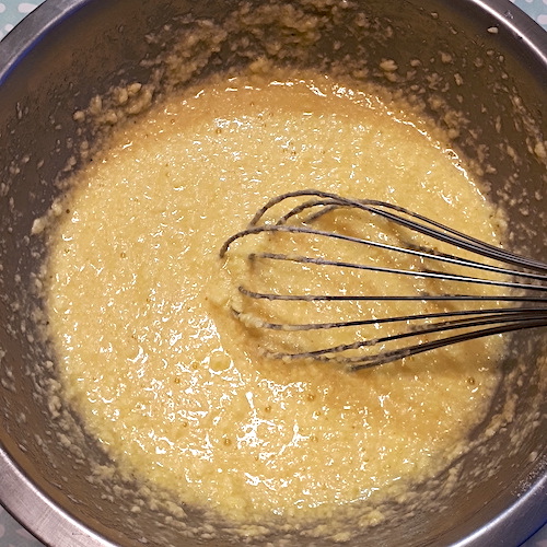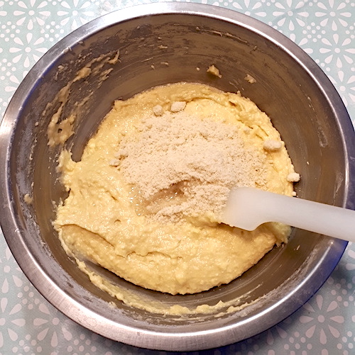 6.Incorporer les œufs un par un en ajoutant une cuillère à soupe de farine après chaque œuf.