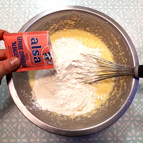 7.Ajouter le reste de farine, la levure et bien mélanger.