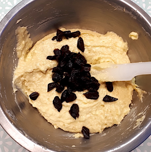8.Ajouter ensuite l’extrait d’amandes amères, les amandes en poudre et les abricots secs. Bien mélanger le tout.