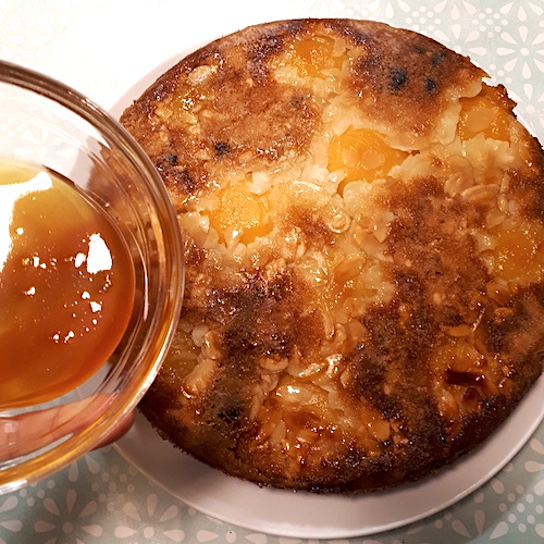 Pour une petite touche de sophistication (et si c’est la bonne saison), vous pouvez réaliser un coulis d’abricots frais au romarin pour accompagner ce gâteau: