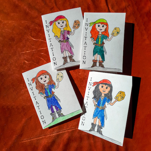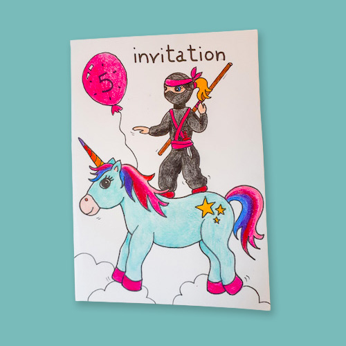 En tant que graphiste et illustratrice, je prends toujours beaucoup de plaisir à faire des dessins pour les cartes d’invitation des goûters d’anniversaire de mes filles.