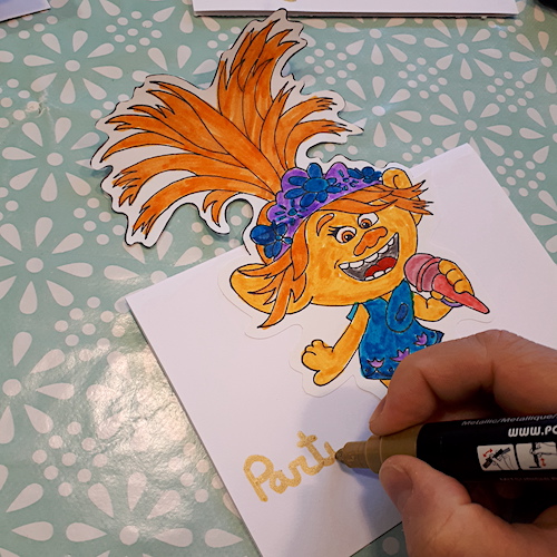 7.Finition de la carte avec un gros marqueur doré pour un côté plus festif.