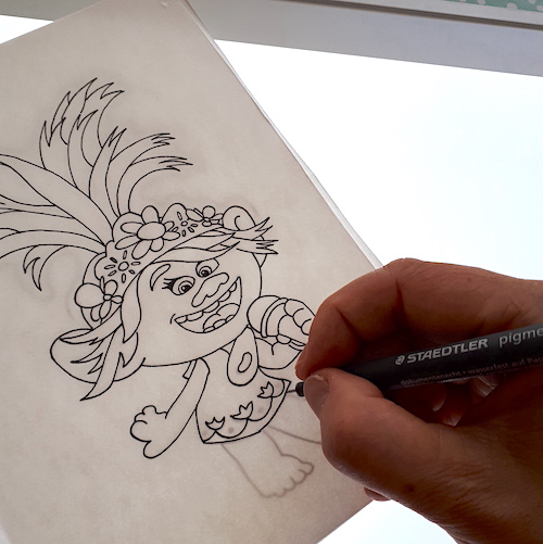 Pour ma part, ayant une tablette lumineuse (qui permet de recopier un dessin par transparence sans papier calque), je réalise un premier dessin au propre que je recopie ensuite autant de fois que nécessaire.