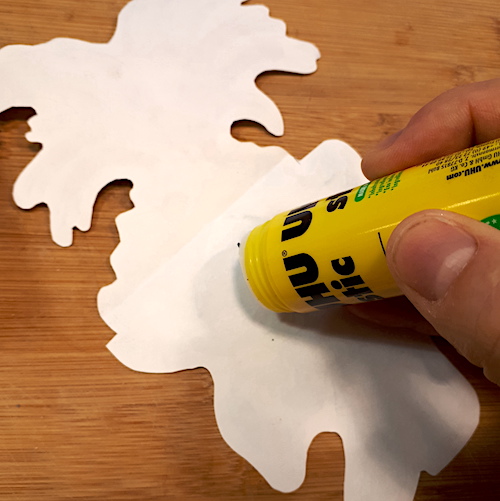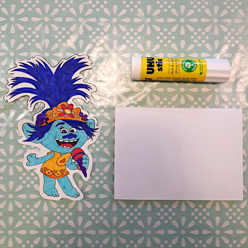 6.Collage du personnage découpé sur le papier cartonné plié en deux.