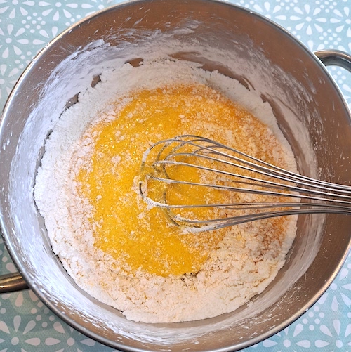 11.Incorporer le beurre coupé en morceaux et bien mélanger à nouveau.