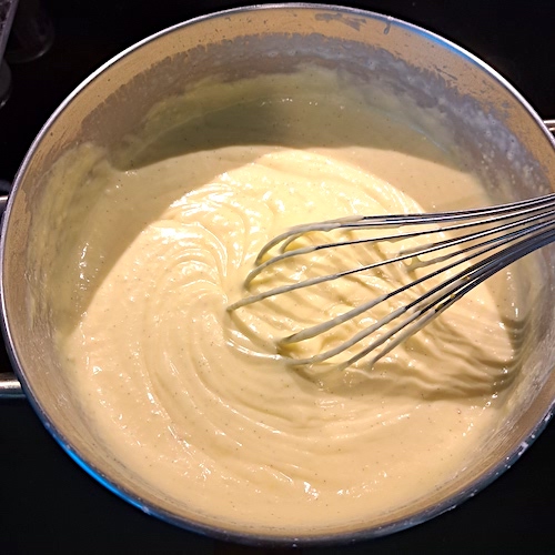 7.Dans une casserole, porter à ébullition le mélange crème-lait.