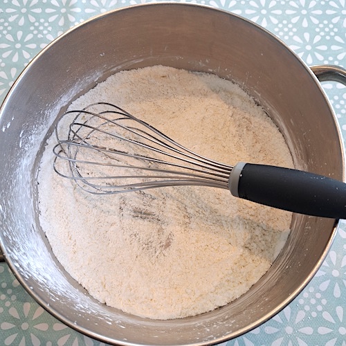 5.Dans un saladier, mélanger le sucre et la Maïzena (ou poudre à flan).