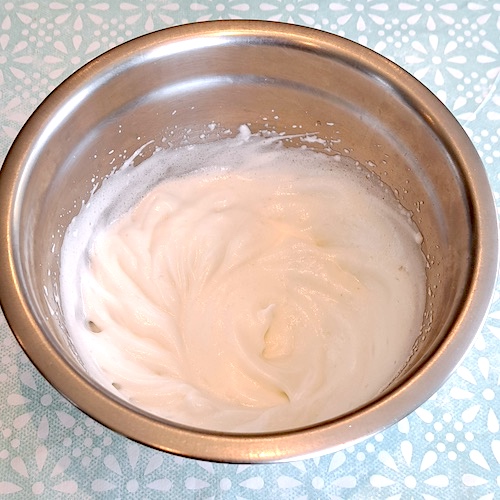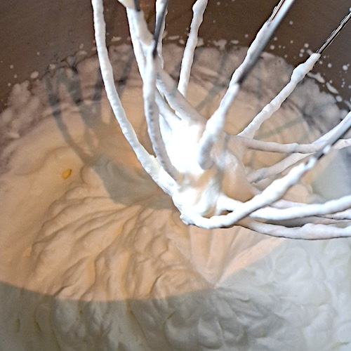 3.Monter les blancs d’œufs en neige avec les 20g de sucre restant.
