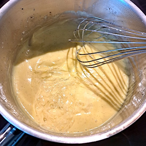 4.Verser sur le mélange jaunes d’œufs et sucre et faire cuire ensemble à 82°C.