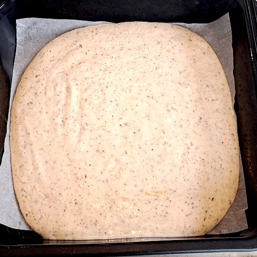 7.Verser sur un moule préalablement recouvert de papier cuisson.