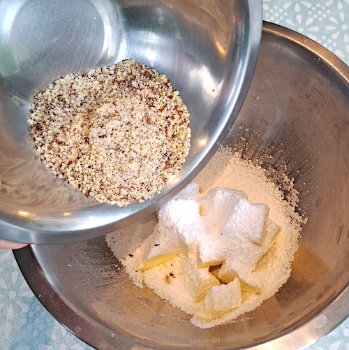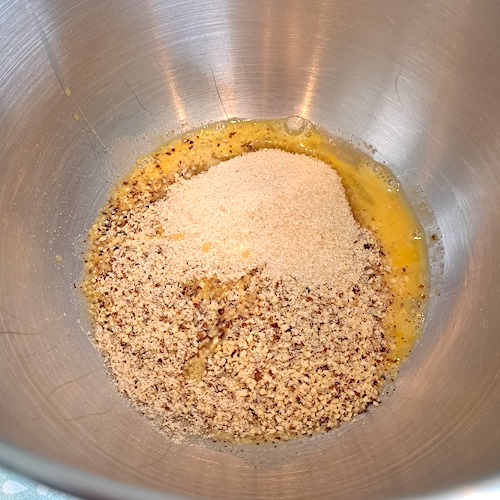 3.Ajouter la poudre d’amande et le sel.