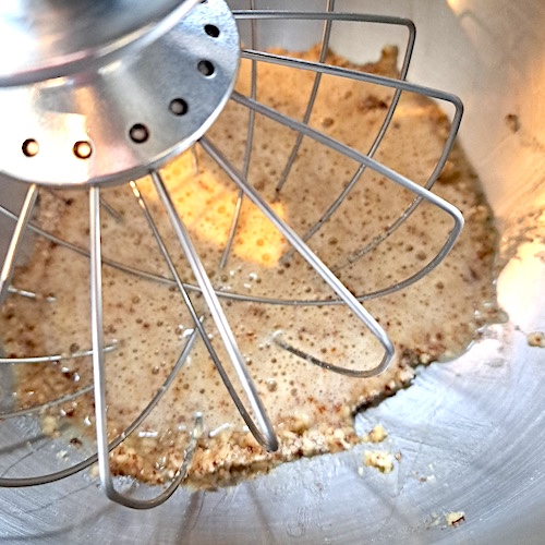 5.Verser sur le reste de blanc d’œuf en neige et ajouter le beurre noisette.