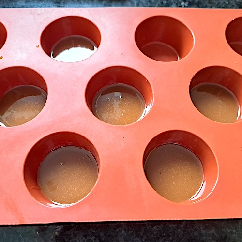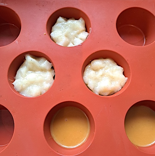 5.Verser un fond de caramel dans 6 moules à mini-muffins.
