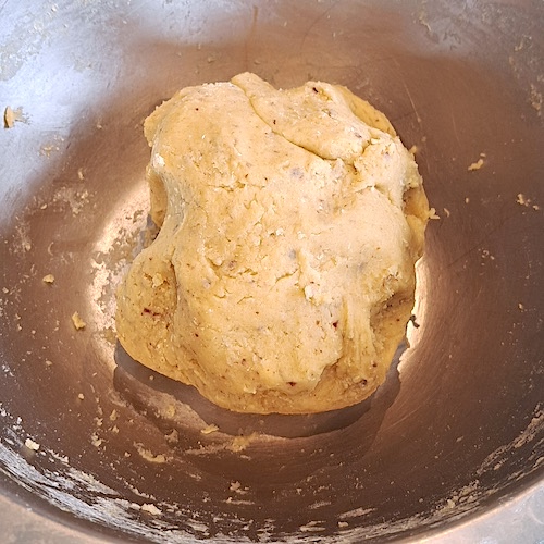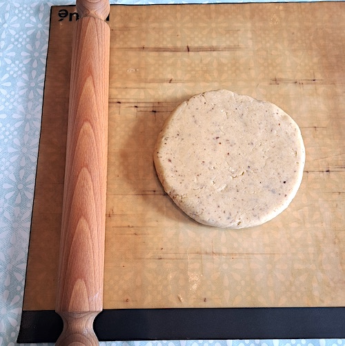 7.Former une boule aplatie, envelopper dans du film alimentaire et laisser reposer 2h au réfrigérateur.