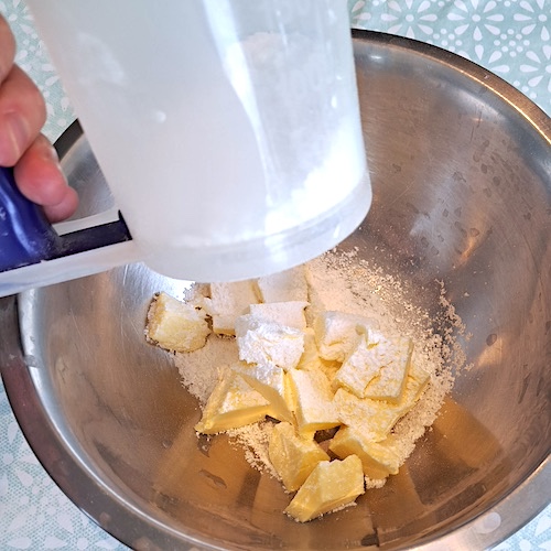 4.Incorporer le beurre en morceaux et bien mélanger.