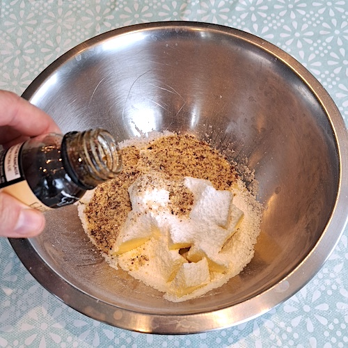 4.Ajouter un peu d’extrait de vanille et mélanger jusqu’à obtenir une préparation à la texture homogène.