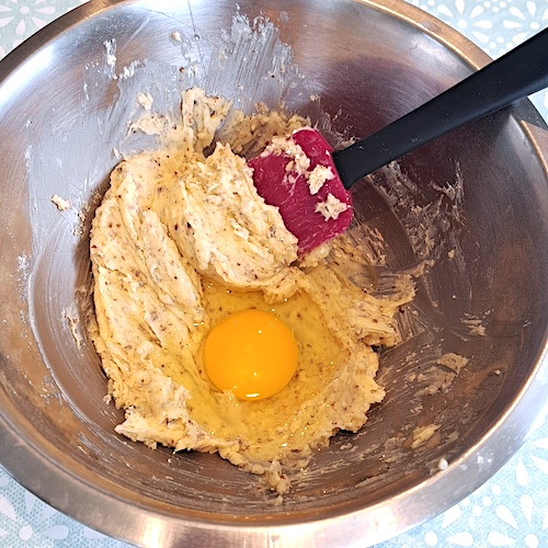 5.Casser l’œuf sur le mélange et remuer.