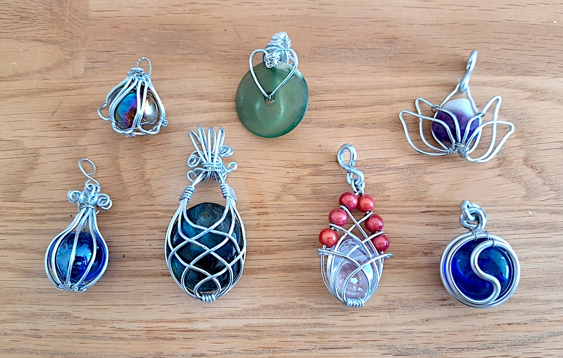 J’y ai vu de nombreuses choses sympas et découvert deux chaines YouTube en particulier (dont vous trouverez les liens en fin d’article). J’y ai appris non seulement comment transformer des pierres en pendentifs mais également trouvé plein d’autres idées de bijoux en fil de métal et pierres/perles/cabochons.