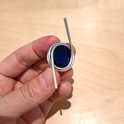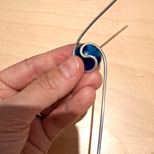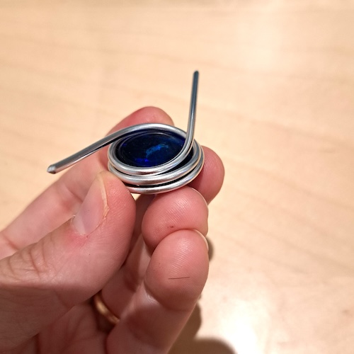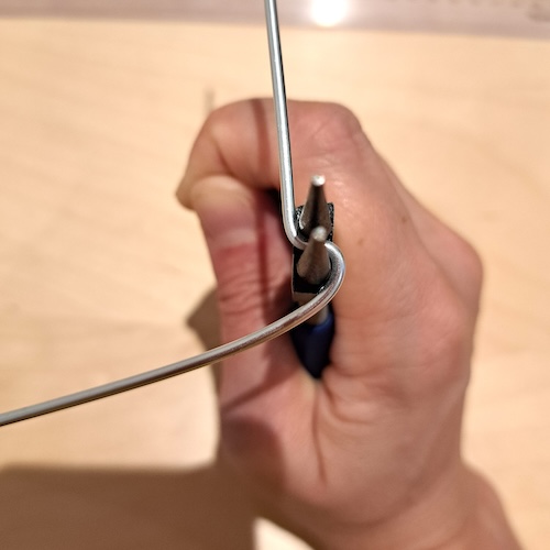 NB: lors de la réalisation je n’avais pas encore de fil adapté, j’ai donc utilisé du fil d’aluminium de 2mm de diamètre, ne soyez pas surpris que le vôtre paraisse plus fin, c’est normal!