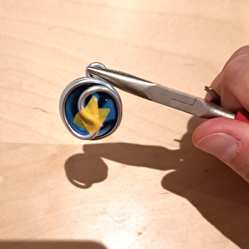 13. Assembler l’attache et le pendentif à l’aide de la pince plate.