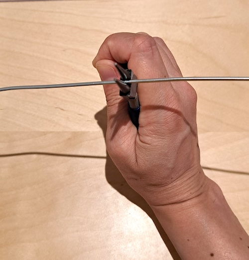 3.Retirer la pince et plier légèrement le fil en le tenant entre les pouces et index (un peu comme pour casser un bâtonnet).
