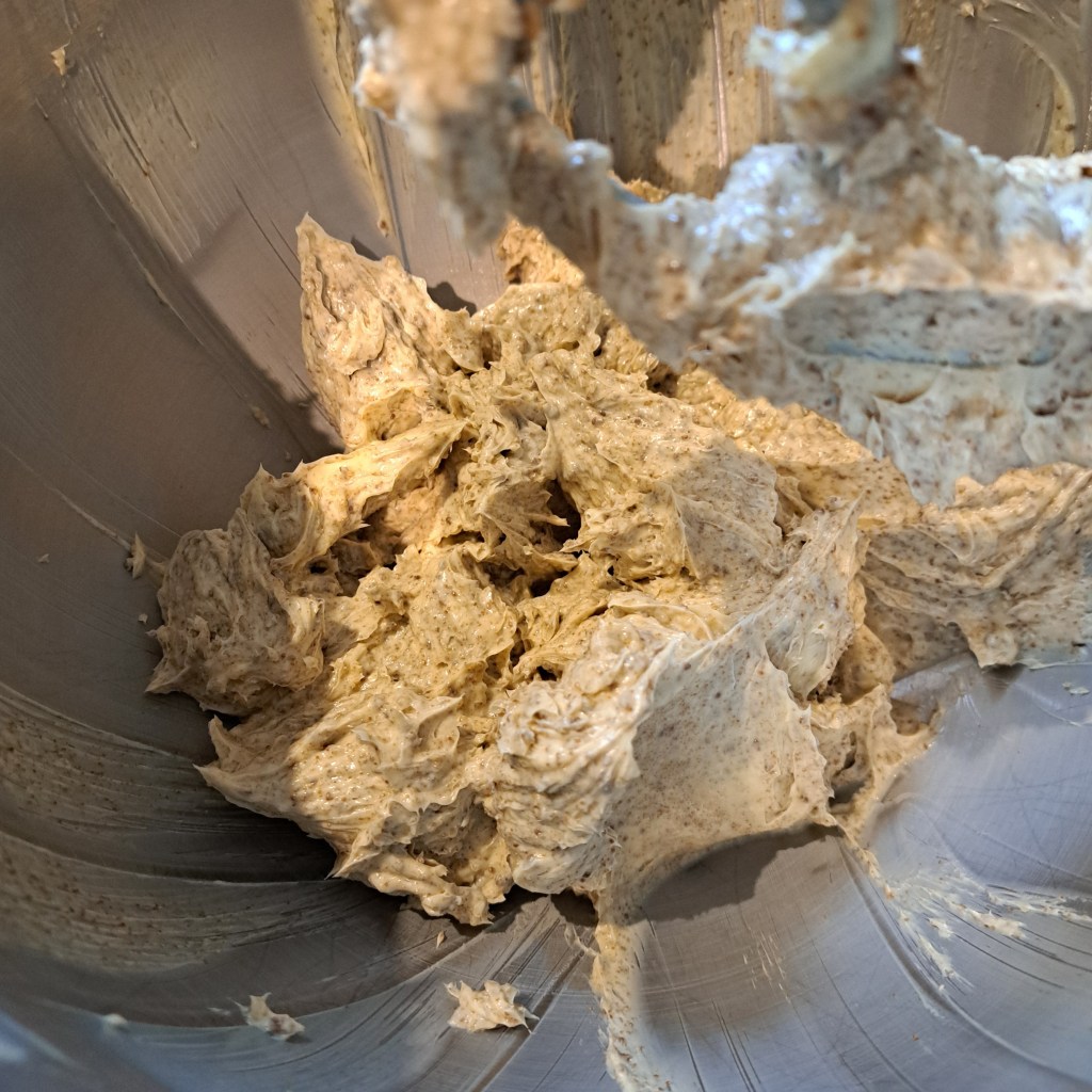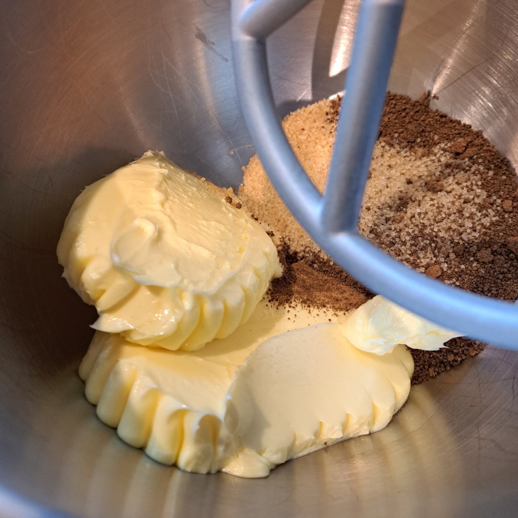 1.Au robot muni de la feuille (ou au batteur électrique), battre le beurre et le sucre pendant 1-2 minutes environ.