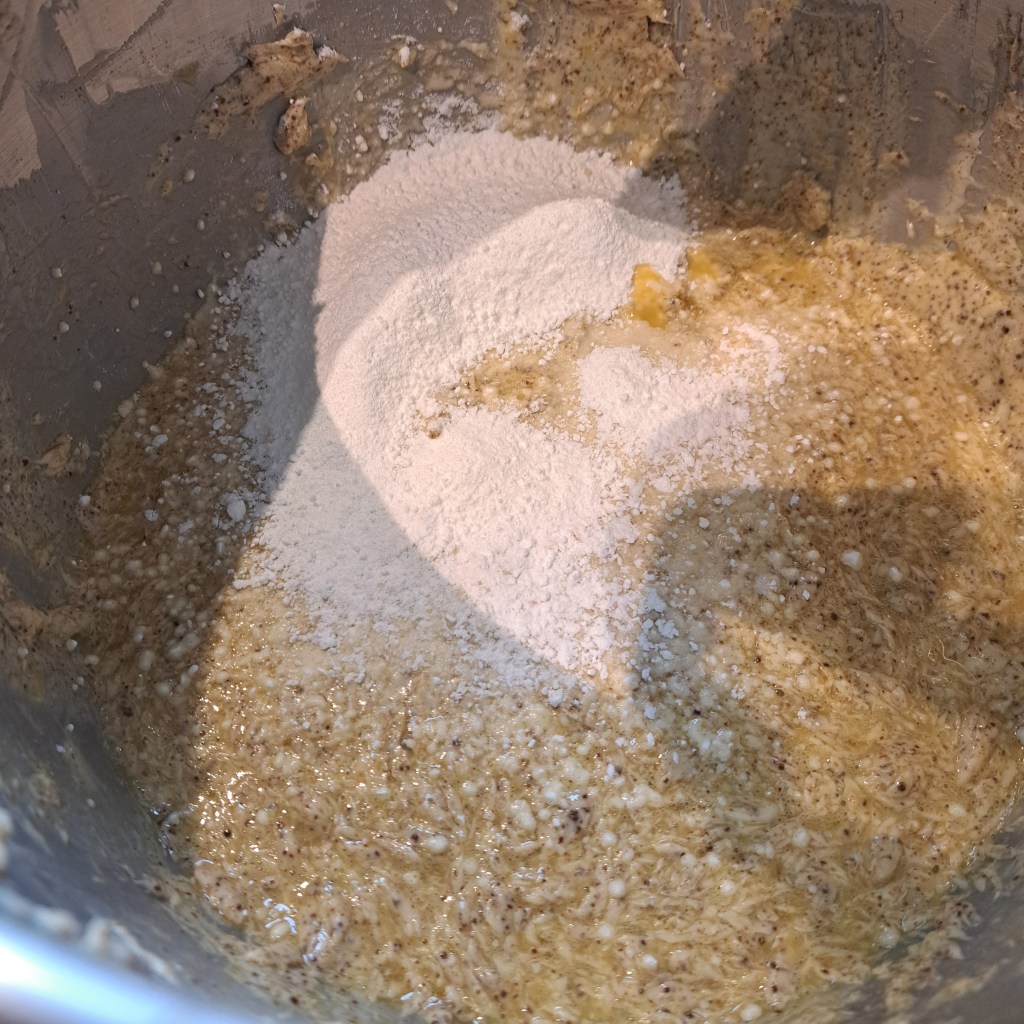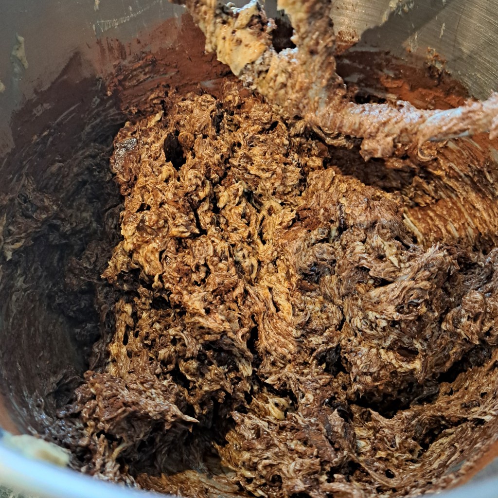 2.Ajouter les œufs battus. Mélanger à vitesse moyenne (juste le temps d’incorporer les œufs).
