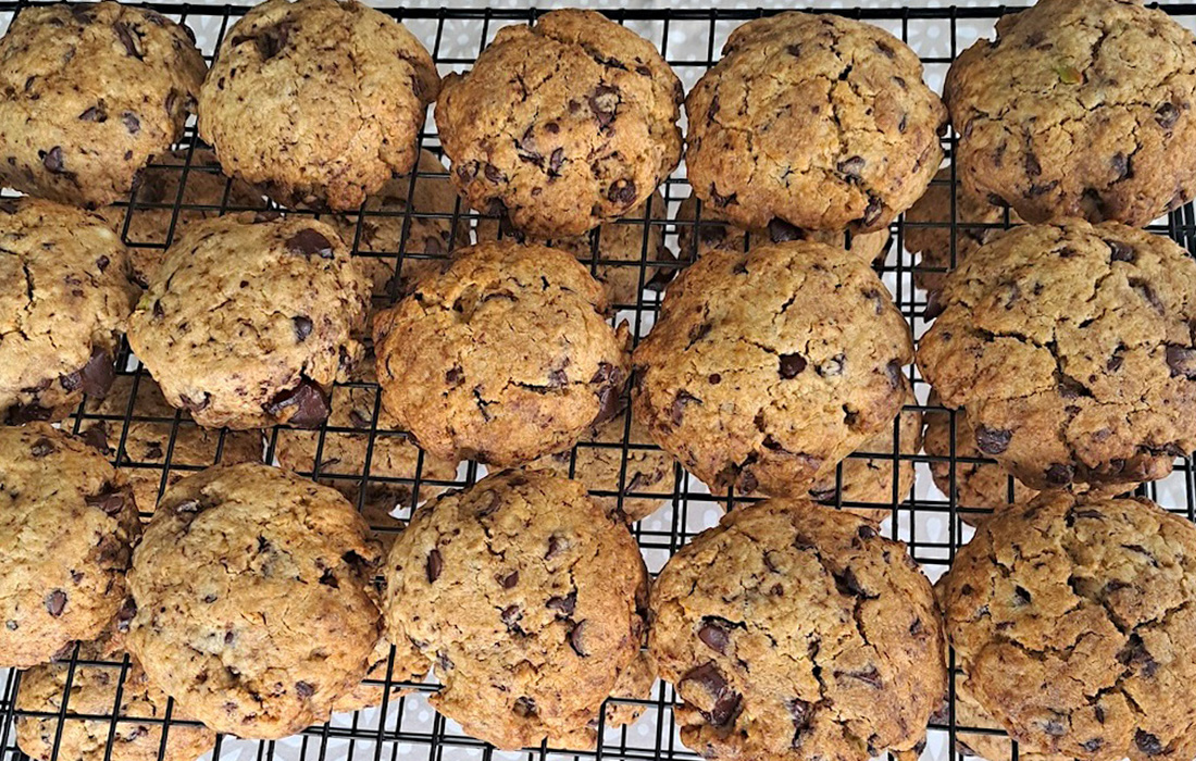 12.Sortir les cookies lorsqu’ils sont légèrement dorés et les mettre sur une grille. Laisser refroidir.