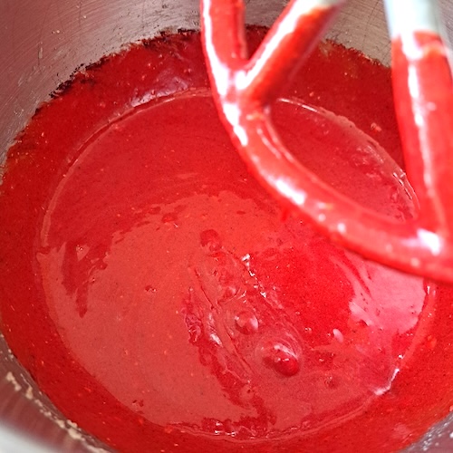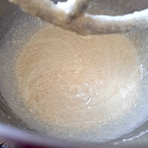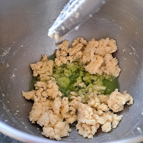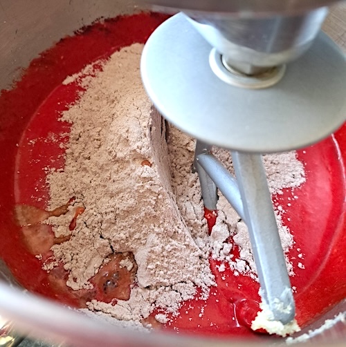 7.Ajouter ensuite la moitié du babeurre, mélanger une dernière fois au robot.