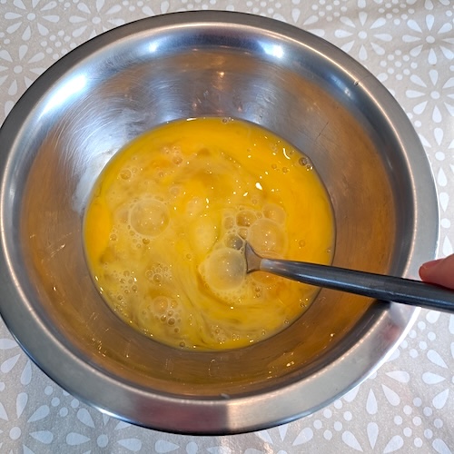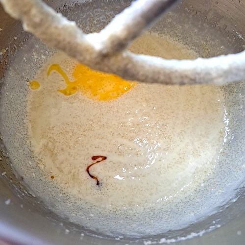 4.Battre vos œufs et les verser dans le bol du robot avec l’extrait de vanille et le vinaigre. Mélanger à nouveau.