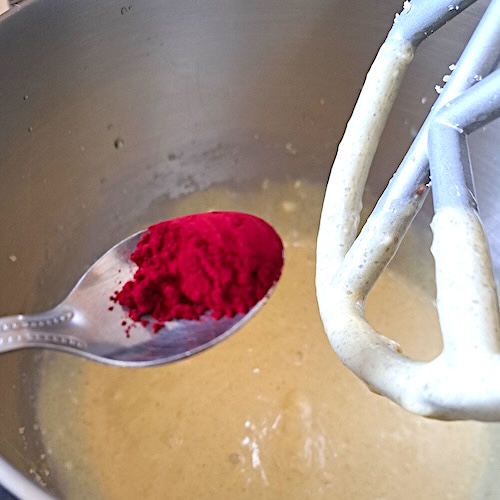 5.Incorporer le colorant (poudre, gel ou liquide). Attention à ne pas en mettre trop!
